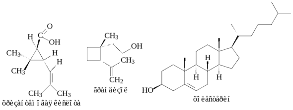 Задачи и упражнения по карбоциклам можно разделить на несколько разделов. Это упражнения непосредственно на синтез самого скелета карбоциклов, задачи на химические свойства этих веществ и задачи, в которых карбоциклы используются как модели для органических реакций. Химия карбоциклов является очень важным разделом органической химии, так как карбоциклические фрагменты часто присутствуют в молекулах, встречающихся в живой природе. Малые циклы в природе встречаются достаточно редко, однако одним из фрагментов природных веществ пиретринов является хризантемовая кислота, которая содержит циклопропановое кольцо. В состав молекулы полового аттрактанта хлопкового долгоносика – феромона грандизола – входит циклобутановое кольцо. Пяти- и шестичленные циклы являются фрагментами одного из важнейших классов биологически активных веществ – стероидов. К стероидам относятся соединения, содержащие четыре кольца с тремя сочленениями (три циклогексановых и одно циклопентановое). Стероид холестерин содержится практически во всех живых организмах. Нарушение холестеринового обмена является одной из причин атеросклероза и мочекаменной болезни. Холестерин вырабатывается в печени, организм получает его также из потребляемой пищи.