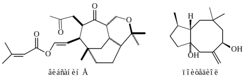 Биологической активностью обладают и многие природные соединения, содержащие в молекулах семи- и восьмичленные циклы, например, вибсанин Е и поитедиол.