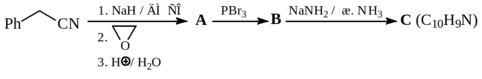 3. Расшифруйте приведенную ниже схему. Далее из синтезированного соединения С получите (1-фенилциклопропил)амин (D).
