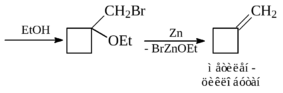 Натриевая соль ЭДТА – (NaO2CCH2)2NCH2CH2N(CH2CO2Na)2 – необходима для связывания ионов цинка в [Zn(ЭДТА-Na4)2]Br2, в присутствии которых может идти побочный процесс расширения циклопропанового кольца, приводящий к метиленциклобутану. В отсутствие натриевой соли ЭДТА метиленциклобутан становится основным продуктом реакции.