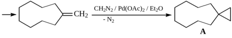 61. Получение cпиро[2.8]ундекана (А) из циклопентена, малонового эфира, метилтрифенилфосфоний бромида и диазометана.