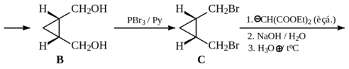 Для метилирования кислоты D используют диазометан, чтобы сохранить циклопропановое кольцо.