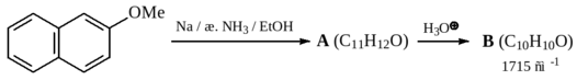 105. Расшифруйте схему превращения 2-метоксинафталина в соединения А и В.
