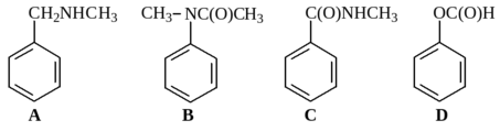 C (С(О)СН3) < A (СН2СН3) < D (ОС(О)СН3) < (ОСН3) B