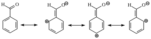 43. Резонансные структуры для бензальдегида, которые указывают, как заместитель в оттягивает электронную плотность от системы ароматического кольца.