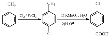 58. Синтез пара-хлорбензойной кислоты и мета-хлорбензойной кислоты, исходя из толуола.