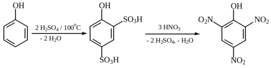 53. Синтез пикриновой кислоты (2,4,6-тринитрофенола) из фенола.