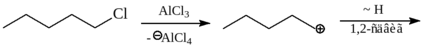 64. Схема механизма алкилирования бензола 1-хлорпентаном по Фриделю-Крафтсу включает перегруппировку первоначального первичного пентилкатиона во вторичный катион.