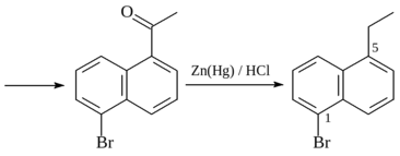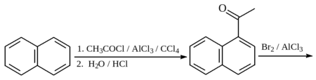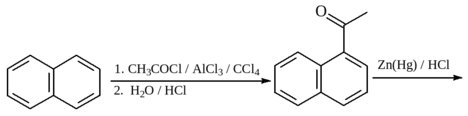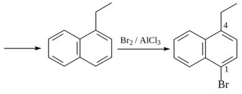 71. Синтез 1-бром-4-этилнафталина и 1-бром-5-этилнафталина используя нафталин, ацетилхлорид и неорганические реагенты.