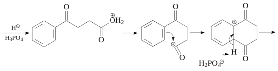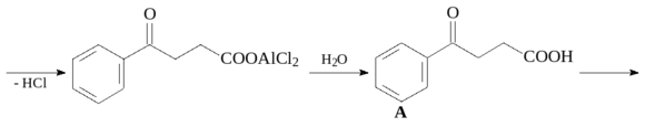 77. Схемы механизмов образования 4-оксо-4-фенилбутановой кислоты (А) и нафталин-1,4-диола (В).