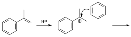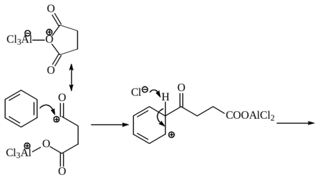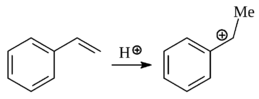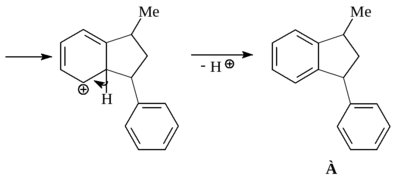 66. Схема механизма превращения стирола (винилбензола) в соединение А реакцией внутримолекулярного алкилирования по Фриделю-Крафтсу.