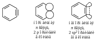 87. Тройная связь в дегидробензоле отличается от обычной тройной связи в алифатическом ряду. Помимо связи есть две различные связи. Одна из связей является типичной для алкенов и аренов и входит в ароматическую систему. Новую связь нельзя назвать нормальной: она образуется за счет перекрывания двух sp2 орбиталей за пределами ароматического кольца. Эта внешняя двойная связь очень слаба и вследствие этого дегидробензол является очень нестабильным интермедиатом: его не удается зафиксировать спектрально и выделить из реакционной смеси, так как он легко димеризуется.