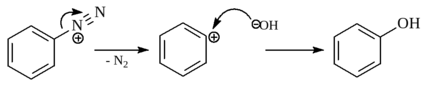 Механизм SN1 может иметь место только в случае образования очень стабильной частицы (хорошей уходящей группы), например, молекулы азота в реакции с участием соли диазония.
