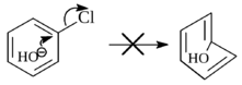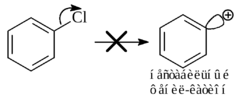 Что касается реакции SN1, то она возможна, но неблагоприятна. Эта реакция должна протекать с образованием арил-катиона в результате отщепления уходящей группы. В случае реакции SN1 в алифатическом ряду карбокатионы планарны и имеют незанятую р-орбиталь. Арил-катион планарен, но р-орбиталь уже является частью ароматического кольца и незаполненной орбиталью становится sp2 орбиталь вне кольца.