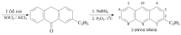 73. Получение исходя из нафталина и этилбензола конденсированного ароматического углеводорода – 2-этилантрацена – реакцией ацилирования по Фриделю-Крафтсу.