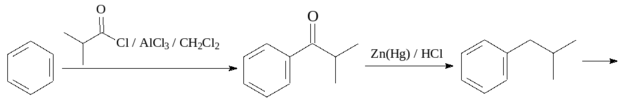 79. Синтез 1-изобутил-2-нитробензола исходя из бензола и изомасляной (2-метилпропановой) кислоты.