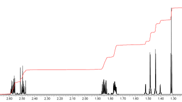 ПМР продукта из K. Интенсивности (2H:4H(1.38-1.53 ppm):2H:2H:2H:2H)