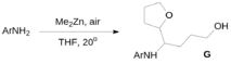 3. Недавно коллективом японских авторов было обнаружено, что на воздухе в присутствии диметилцинка ароматические амины в тетрагидрофуране превращаются в аминоспирты G: