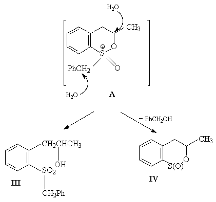 Интермедиат (A) реагирует с водой по SN2, при этом возможны 2 направления реакции: