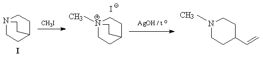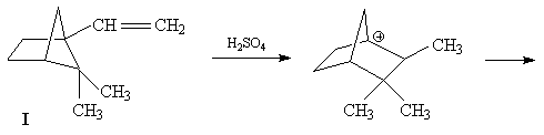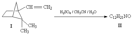 9. При действии на алкен (I) 92%-ной cерной кислоты в ацетонитриле при 0-5°С и последующей обработке реакционной смеси водой образуется амид уксусной кислоты (II).