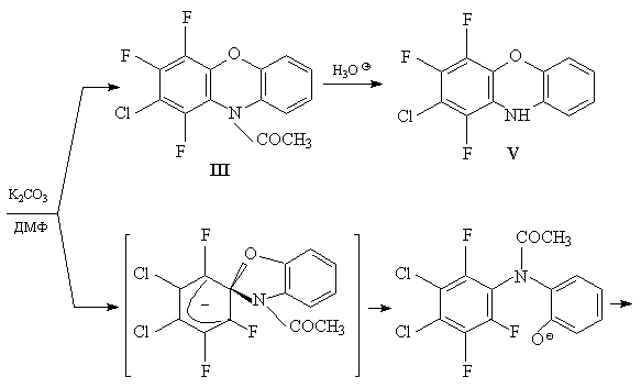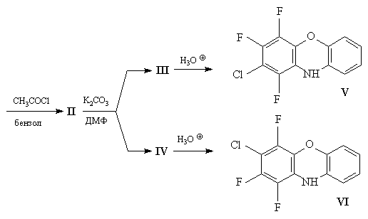 1. В результате четырехстадийного синтеза вместо ожидаемого замещенного феноксазина (V) было получено с выходом 92% производное (VI). Назовите соединения (I)-(IV) и объясните образование производного феноксазина (VI).