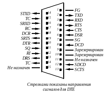 | 3 | RXD | Последовательные данные, принимаемые DTE от DCE |