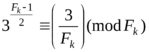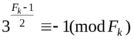 Пусть Fk – простое число. Тогда по критерию Эйлера для символа Лежандра,