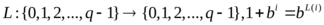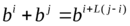 Теперь рассматриваем суммы 1+bi и находим по таблице, каким степеням aj они равны. Например, 1+b=x+2=b7, т.е. L(1) = 7.