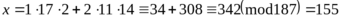 Ответ: 10029 mod 187=155.