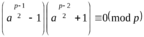 По теореме Ферма, ap--1≡1(mod p). В этом сравнении перенесем единицу в левую часть: ap—1—1≡0(mod p). Поскольку p – простое, а значит нечетное число, значит p—1 – число четное. Тогда можем разложить левую часть сравнения на множители: