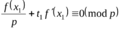 f(x1)+pt1f '(x1)≡0(mod p2).