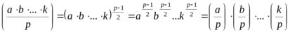 При этом квадраты не сравнимы между собой по модулю p, т.к. иначе из того, что k2 ≡ l2 (mod p), 0 < k < l