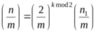 преобразуем, пользуясь законом взаимности, и затем приводим числитель m по модулю знаменателя n1 и повторяя для получившегося символа Якоби шаги 1-4, пока в числителе не останется 1 или —1.