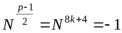 Найдем какой-нибудь квадратичный невычет по модулю p. Согласно св-ву 7 для символа Лежандра, таким невычетом в случае p=8k+5 будет являться «2». Тогда, согласо критерию Эйлера, 24k+2≡—1(mod p).