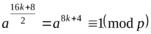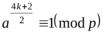 Тогда возникают два случая: a4k+2≡1(mod p) или a4k+2≡-1(mod p).