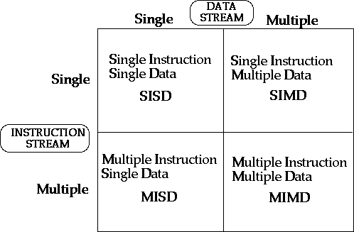 SISD (single instruction stream / single data stream) -- одиночный поток команд и одиночный поток данных. К этому классу относятся, прежде всего, классические последовательные машины, или иначе, машины фон-неймановского типа, например, PDP-11 или VAX 11/780. В таких машинах есть только один поток команд, все команды обрабатываются последовательно друг за другом и каждая команда инициирует одну операцию с одним потоком данных. Не имеет значения тот факт, что для увеличения скорости обработки команд и скорости выполнения арифметических операций может применяться конвейерная обработка -- как машина CDC 6600 со скалярными функциональными устройствами, так и CDC 7600 с конвейерными попадают в этот класс.
