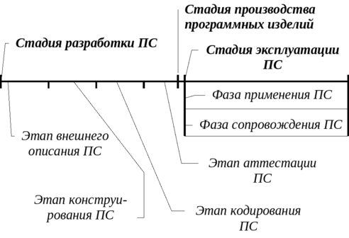 Стадия разработки (development) ПС состоит из этапа его внешнего описания, этапа конструирования ПС, этапа кодирования (программирование в узком смысле) ПС и этапа аттестации ПС. Всем этим этапам сопутствуют процессы документирования и управления (management) ПС. Этапы конструирования и кодирования часто перекрываются, иногда довольно сильно. Это означает, что кодирование некоторых частей программного средства может быть начато до завершения этапа конструирования.
