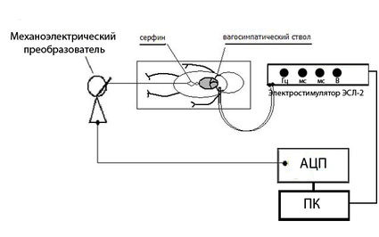 ис. 1. Блок-схема установки для регистрации сокращений сердца.