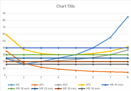 Постройте график средних и предельных издержек (AFC, AVC, ATC, MC) и отметьте на нём оптимальный выпуск продукции фирмы при разном уровне цен. Постройте кривую предложения фирмы.