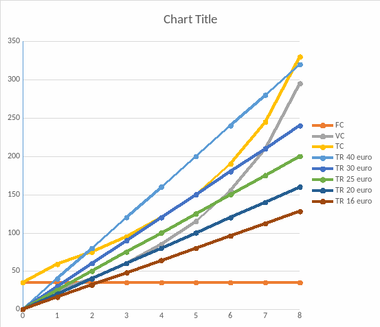 Постройте график, изображающий кривые FC, VC, TC, а также TR при различном уровне цен. Покажите на этом графике зоны прибыльности и убыточности.
