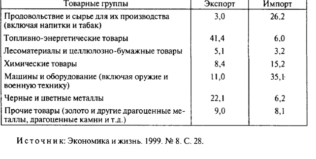 Таблица 34.2. Структура внешней торговли России в 1998 г. (% к итогу)