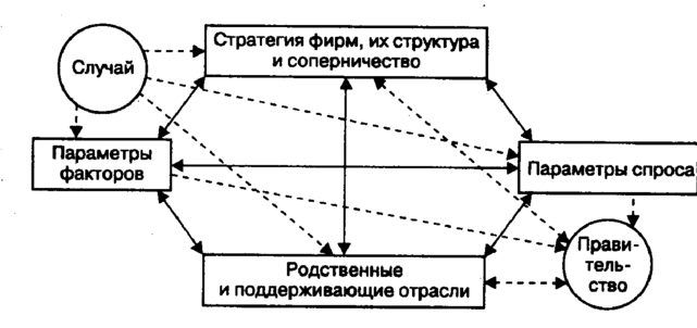 В общей картине конкурентных преимуществ М. Портер отводит роль также с л у ч а ю и п р а в и т е л ь с т в у .