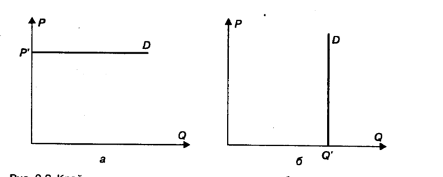 Рис. 9.2. Крайние случаи эластичности: а — спрос абсолютно эластичен, б — спрос абсолютно неэластичен