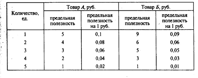Как может быть использован закон убывающей предельной полезности при объяснении потребительского выбора? Предположим, что мы пришли в магазин за покупками, имея 350 руб. Предположим также, что имеется всего два товара: А и Б, цены которых соответственно 50 и 100 руб. Сколько единиц товара А и Б мы купим? Иными словами, как мы распределим наш бюджет на покупку этих товаров, исходя из их полезности?