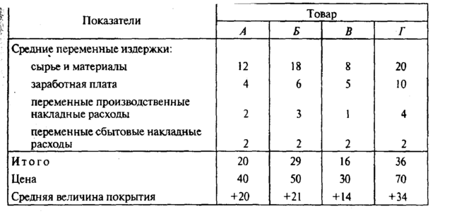 Переменные издержки на производство и реализацию единицы каждого товара характеризуются следующими данными, руб.: