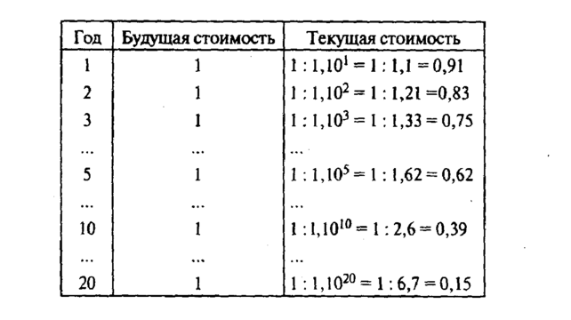 1. Инфляция. Если через год на 1 руб. можно купить набор товаров и услуг, который сейчас стоит 50 коп., то и цена долгового обязательства на год в 1 руб. сейчас составляет 50 коп.