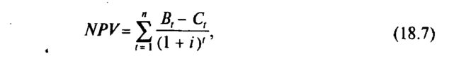 где NPV— чистая приведенная стоимость (англ. net present value); Вt, — выгода (доход) от проекта в году t; С t— затраты на проект в году t ;i — ставка дисконта; n — число лет цикла жизни проекта.
