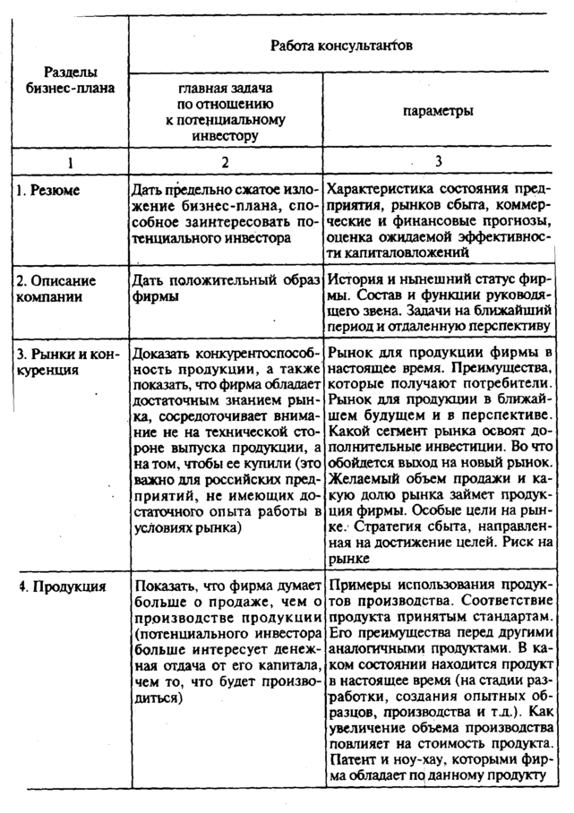 7. В чем состоят главные задачи консультантов при подготовке каждого из разделов бизнес-плана?