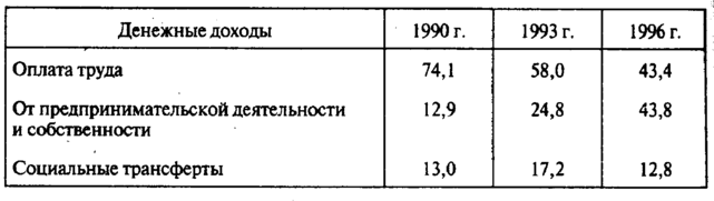 Таблица 28.1. Структура денежных доходов населения России в 1990—1996 гг., % к итогу