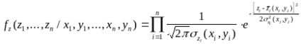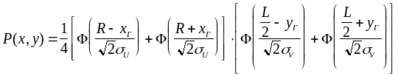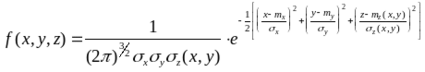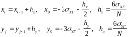 При решении задачи будем полагать, что оси выбранной системы координат параллельны главным осям рассеивания, при этом для стрельбы снарядом с неконтактным взрывателем закон рассеивания можно представить в виде: